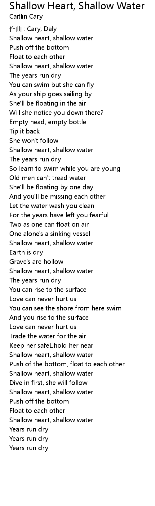 | Shallow heart, shallow water | |
