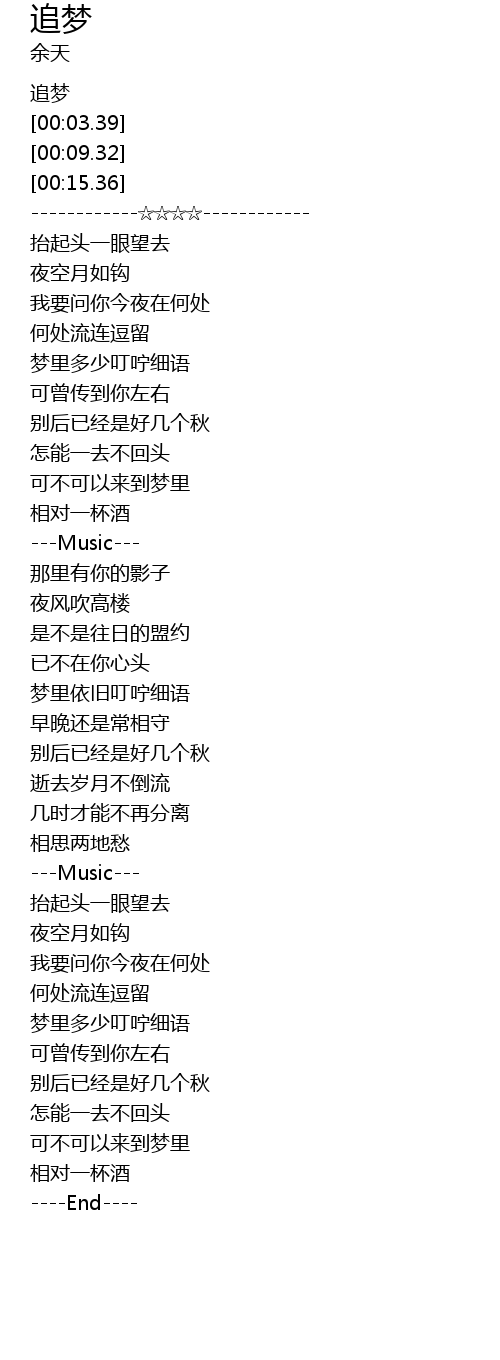 | [00:01.50] | 追梦 |