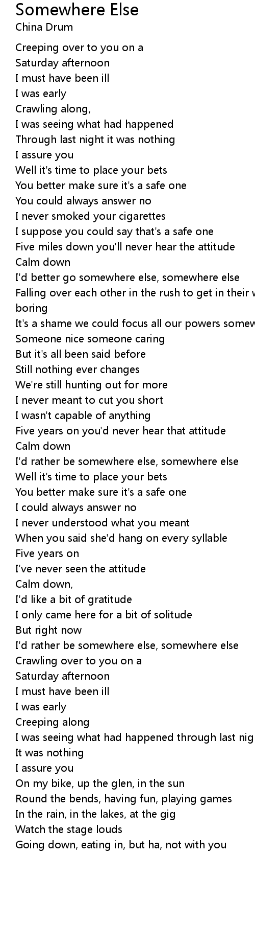 I'd better go somewhere else, somewhere else |