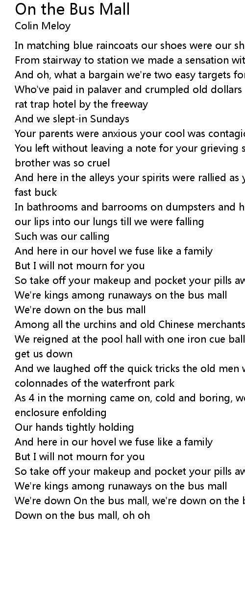 Who've paid in palaver and crumpled old dollars which we squirreled away In our rat trap hotel by the freeway |