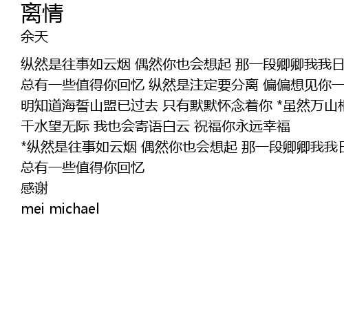 | 纵然是往事如云烟 偶然你也会想起 那一段卿卿我我日子里 | |