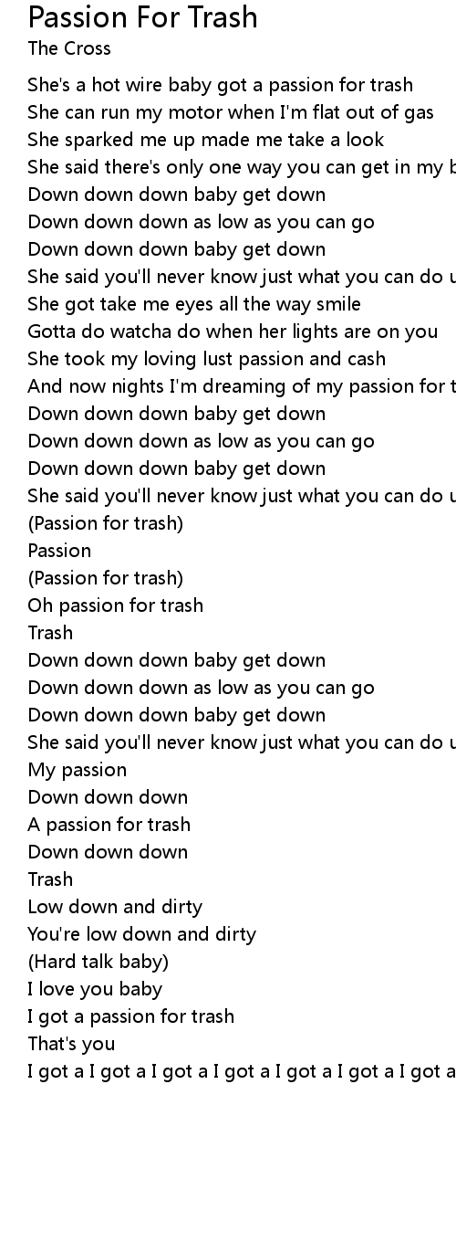 I got a I got a I got a I got a I got a I got a I got a passion for trash |