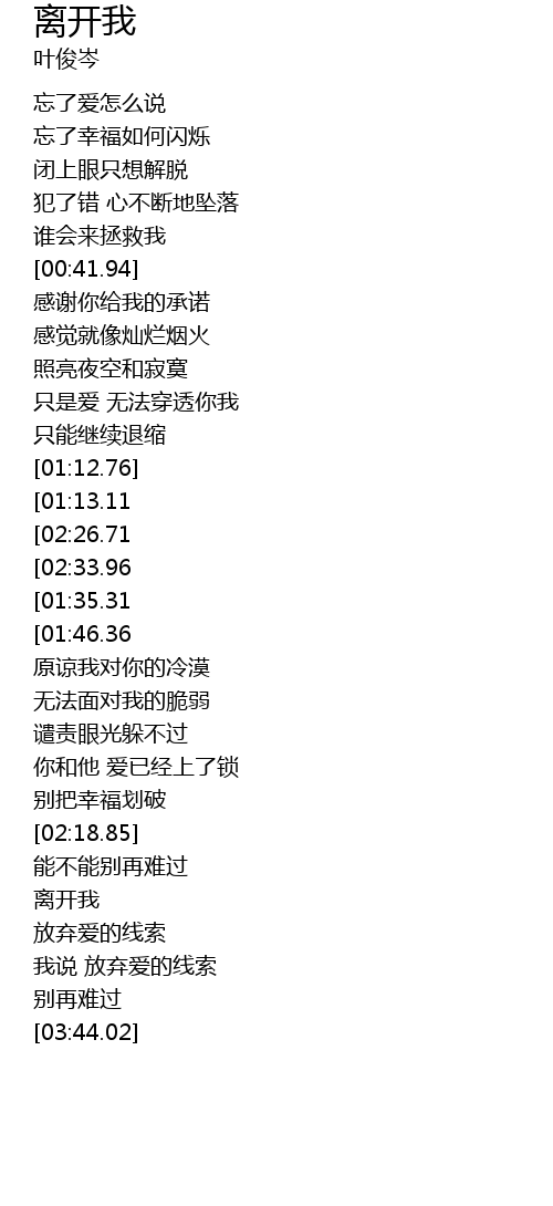 | [02:41.46][01:35.31] | 放弃爱的线索 别再难过 |