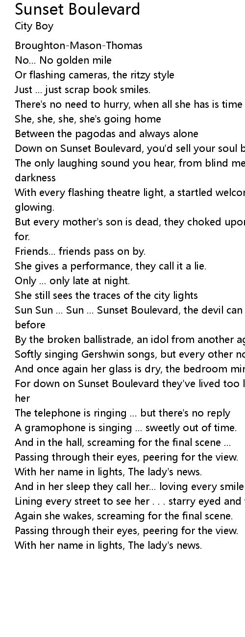 | Sun Sun ... Sun ... Sunset Boulevard, the devil can take her, she's been there before | |