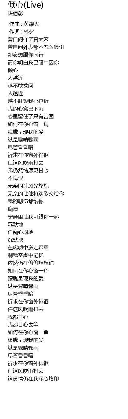 | [02:50.27] | 祈求在你窗外徘徊 |