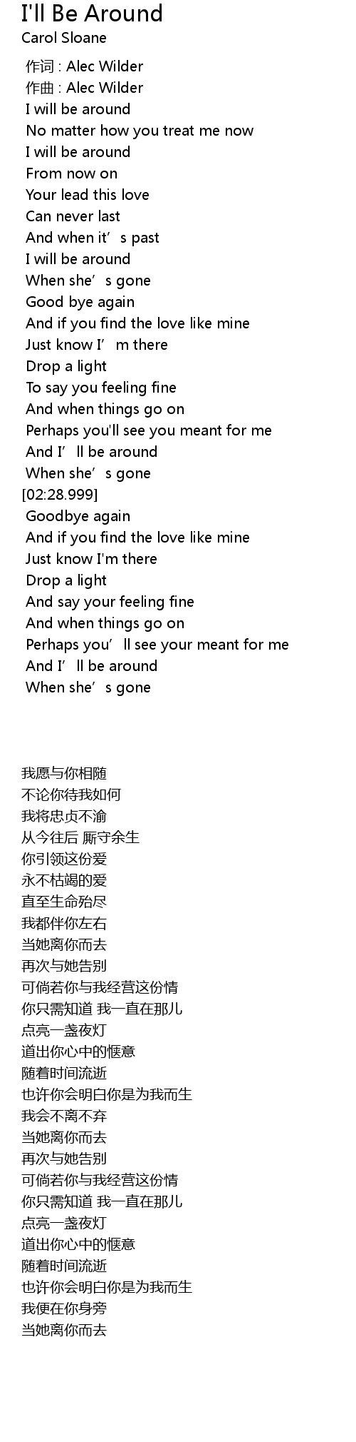 | [00:17.096] | I will be around |