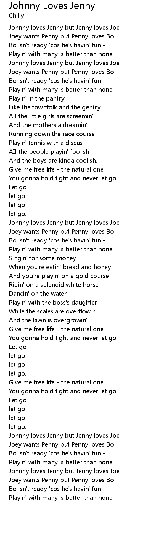 Johnny loves Jenny but Jenny loves Joe |