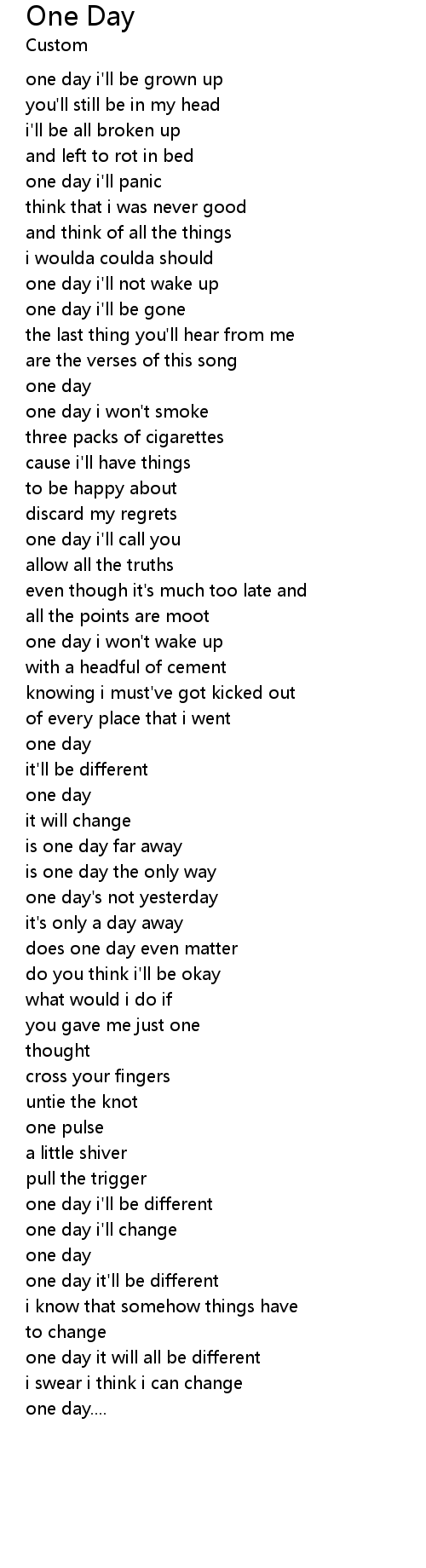 | one day i'll not wake up | |