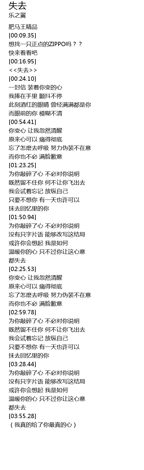 | [03:56.57] | (我真的给了你最真的心) |