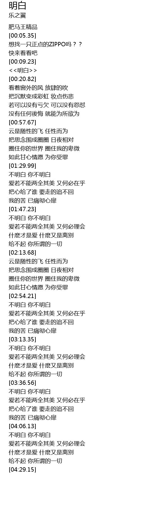 | [04:06.31] | bu ming bai ni bu ming bai |