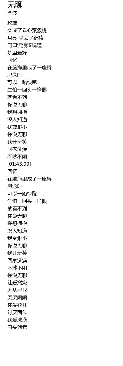 | [01:13.56] | 你说无聊 |