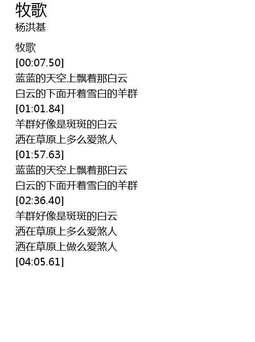 | [00:44.85] | 白云的下面开着雪白的羊群 |
