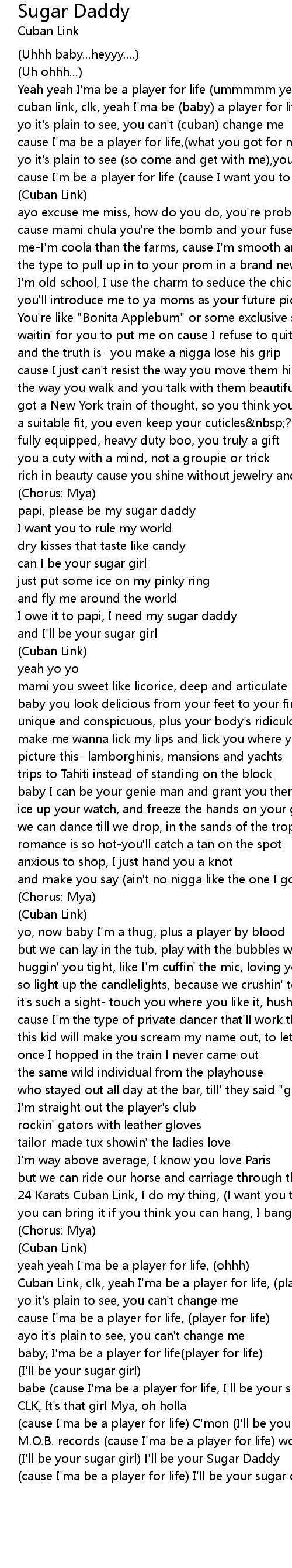 cause I'm be a player for life (cause I want you to be my sugar daddy) |