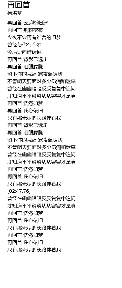 | [02:34.13] | 再回首 恍然如梦 |
