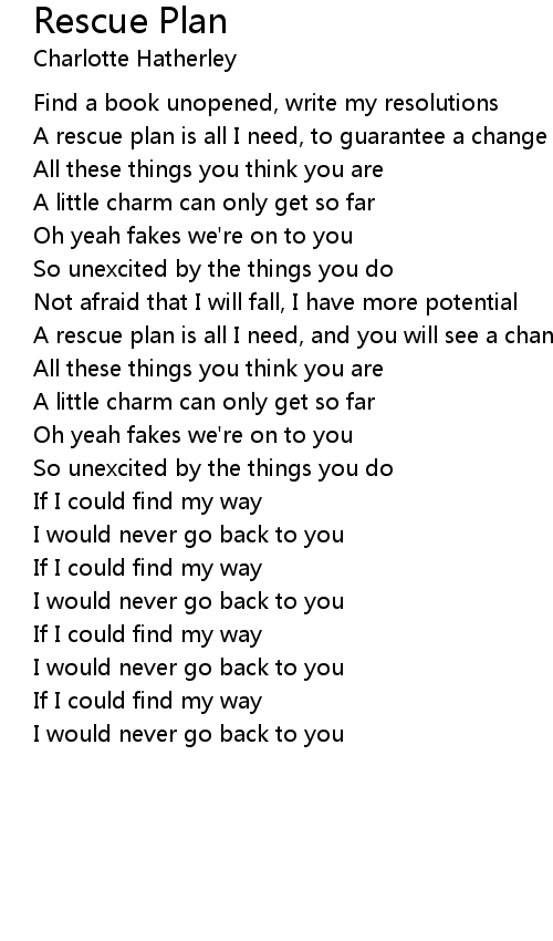 A rescue plan is all I need, to guarantee a change in me |