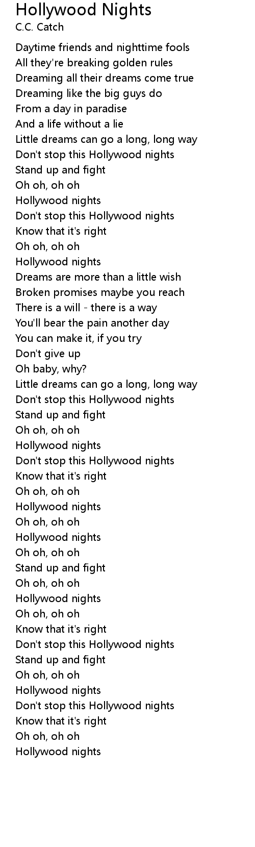 Don't stop this Hollywood nights |