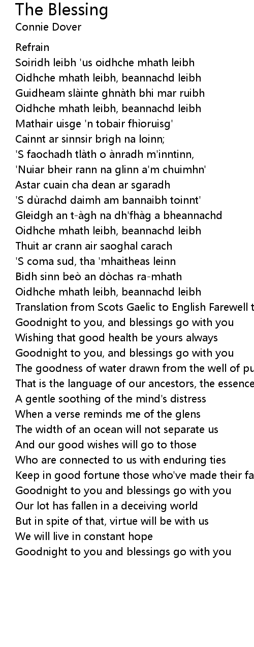 | Translation from Scots Gaelic to English Farewell to you and goodnight to you | |