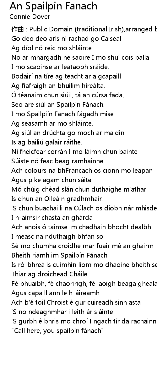 | [01:59.014] | Bheith riamh im Spailpí n Fá nach |