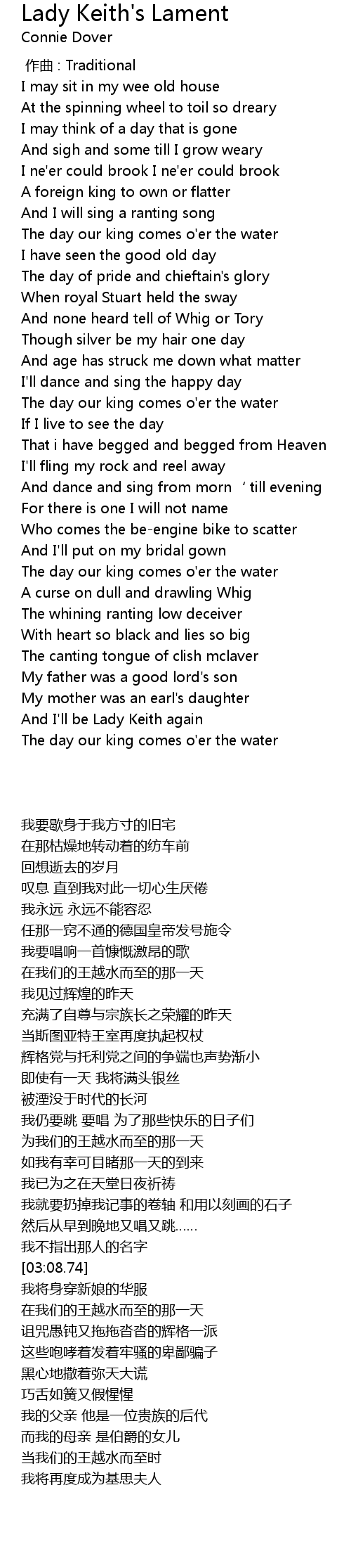 | [04:11.01] | And I' ll be Lady Keith again |