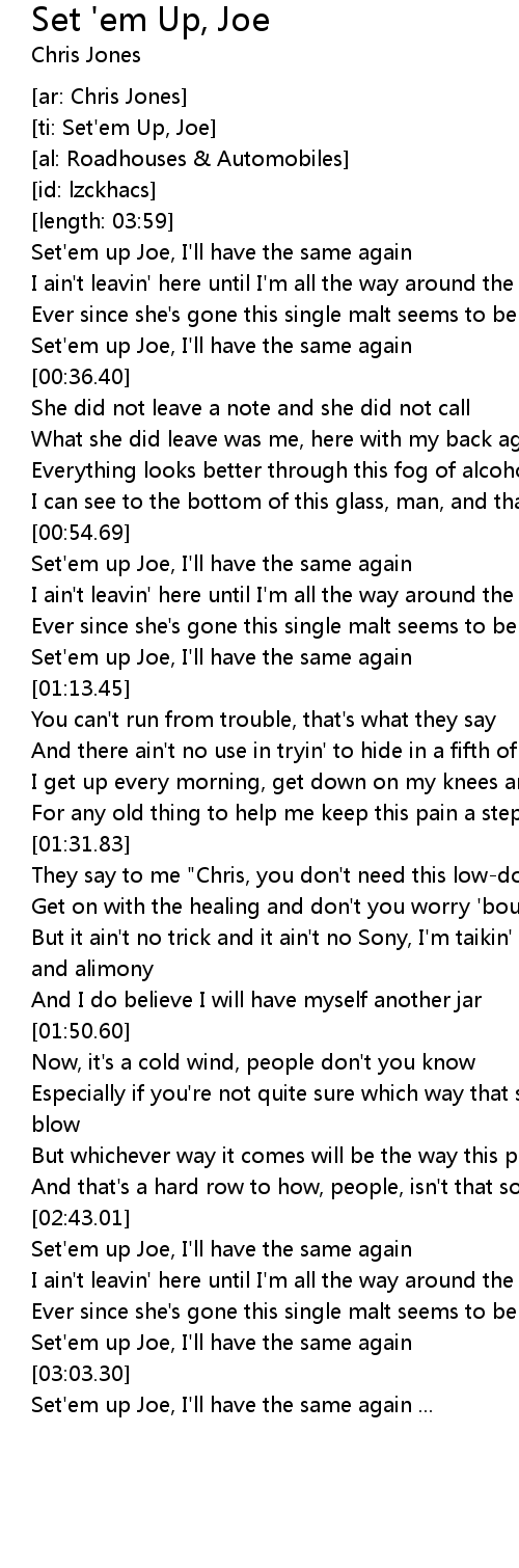 They say to me "Chris, you don't need this low-down, smoky bar |