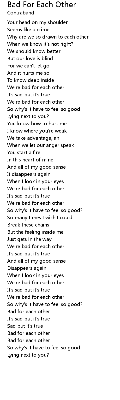 Bad for each other |