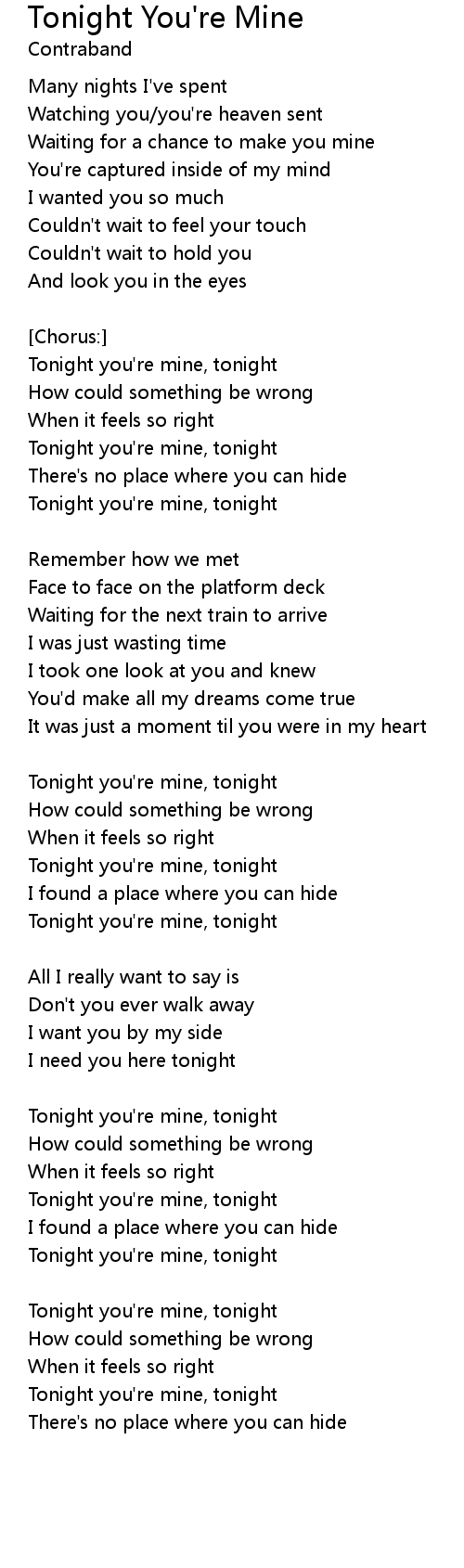 Tonight you're mine, tonight |