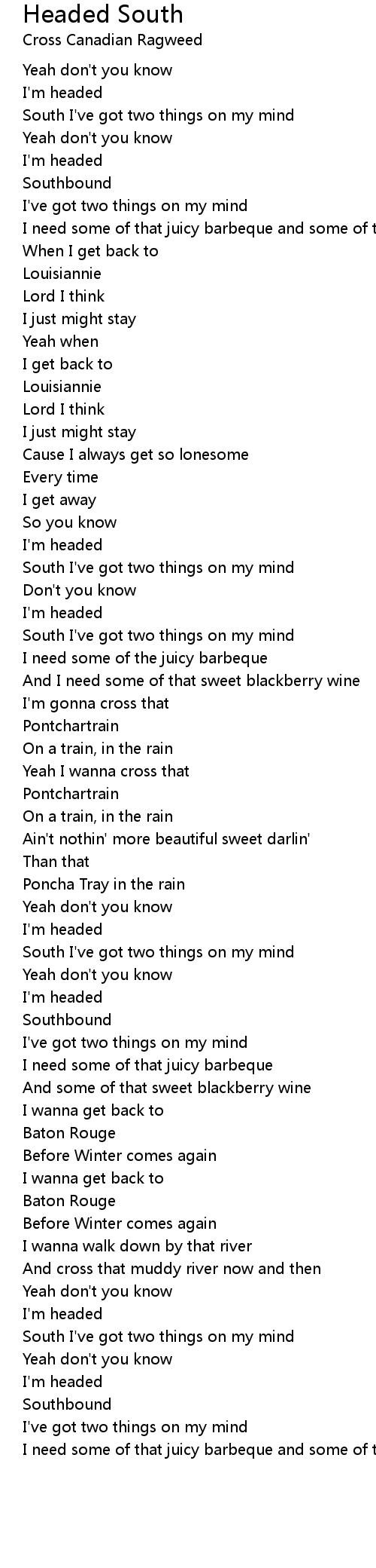 South I've got two things on my mind |