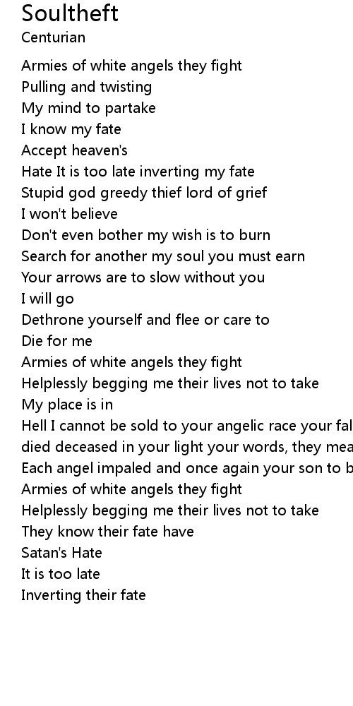 Hell I cannot be sold to your angelic race your fall is foretold father you've died deceased in your light your words, they mean nothing my mind is too strong |