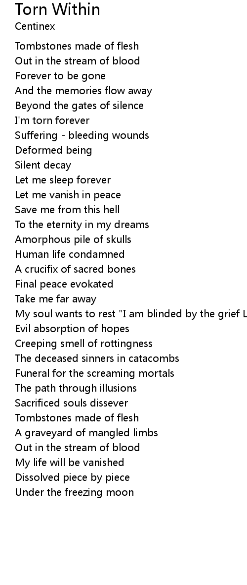 My soul wants to rest "I am blinded by the grief Let me be dead, forever" |