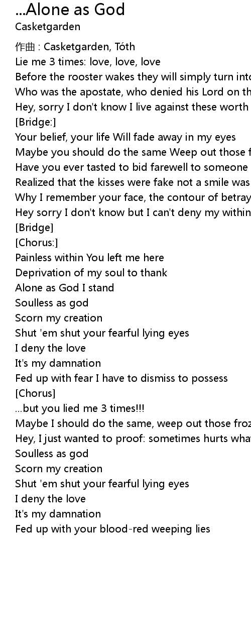 | Maybe I should do the same, weep out those frozen strength tears | |