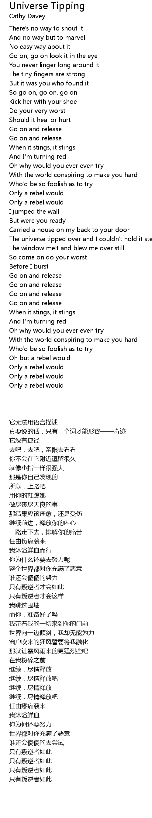 The universe tipped over and I couldn't hold it steady |