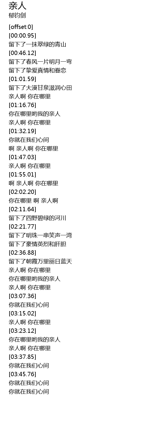 | [02:03.68] | 你在哪里 啊 亲人啊 |