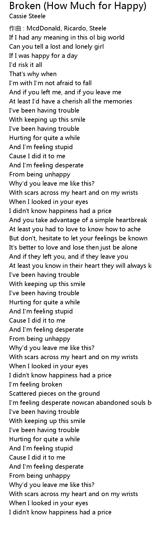| Song | Broken (How Much for Happy) |