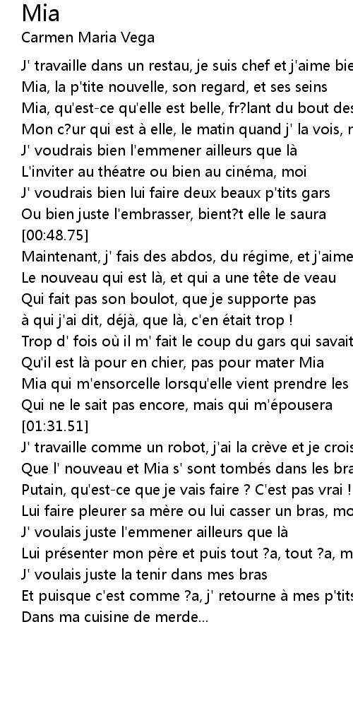 | [01:16.57] | Qu' il est la pour en chier, pas pour mater Mia |