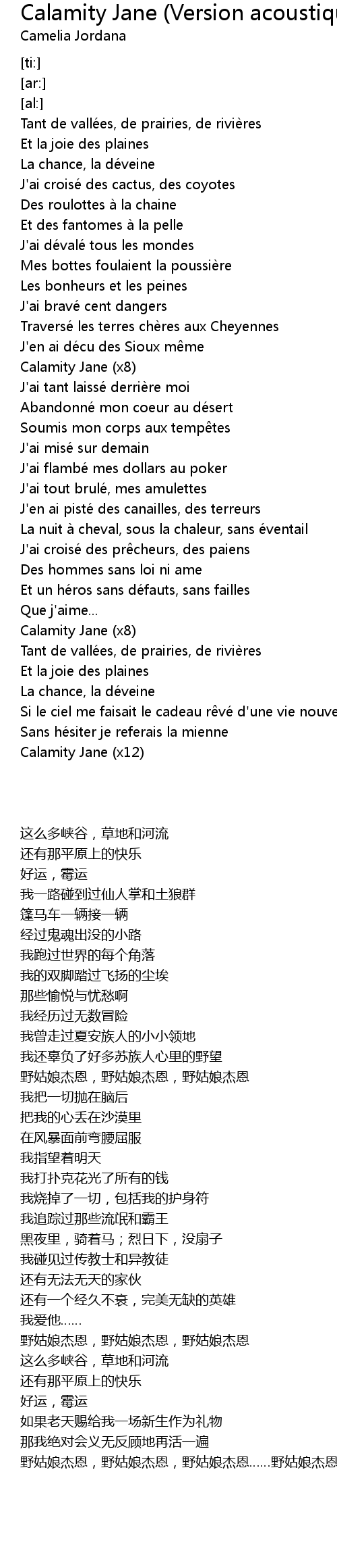 | [00:54.80] | Calamity Jane (x8) |