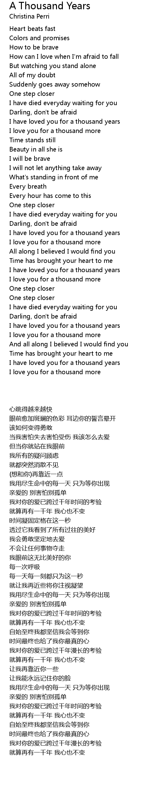 I have loved you for a thousand years |