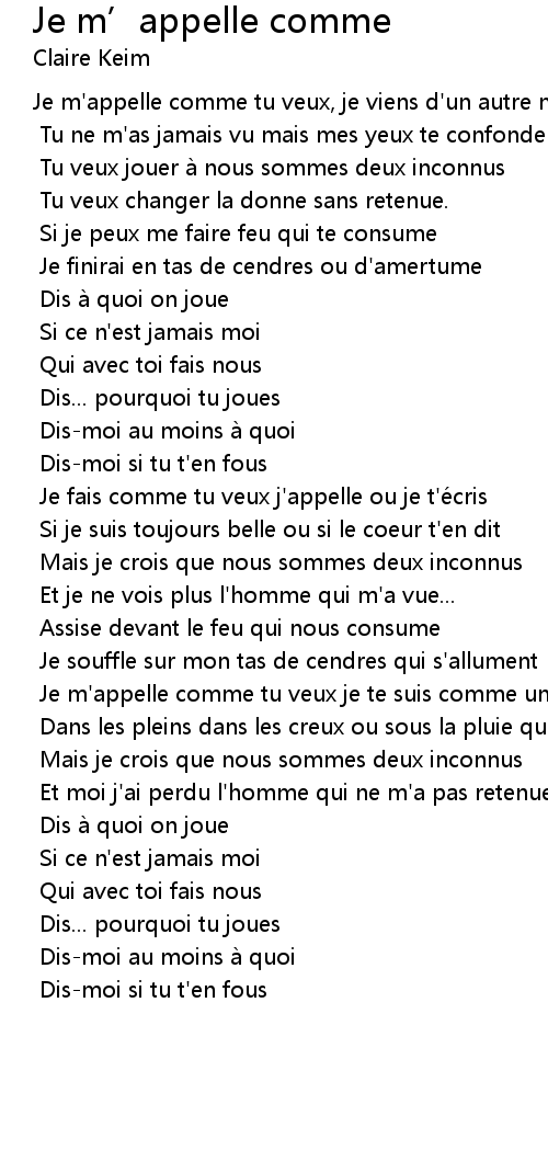 | Je m' appelle comme tu veux je te suis comme une ombre | |