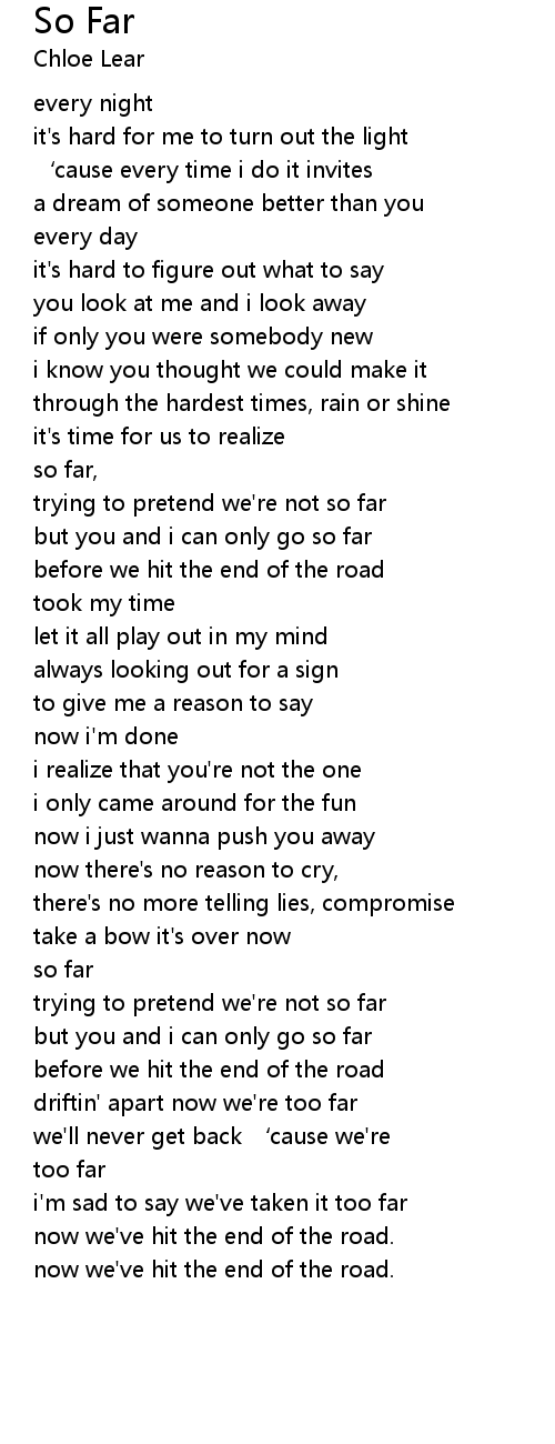 | [02:05.80] | trying to pretend we're not so far |