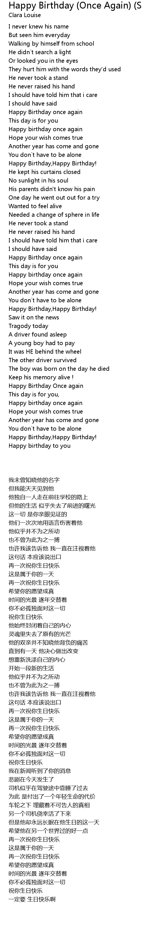 | [00:34.85] | Happy Birthday once again |