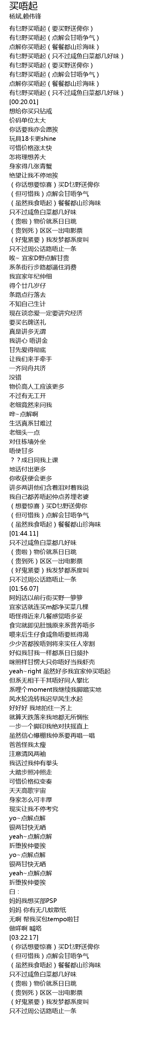 | [00:02.01] | 有乜野买唔起(要买野送俾你) |