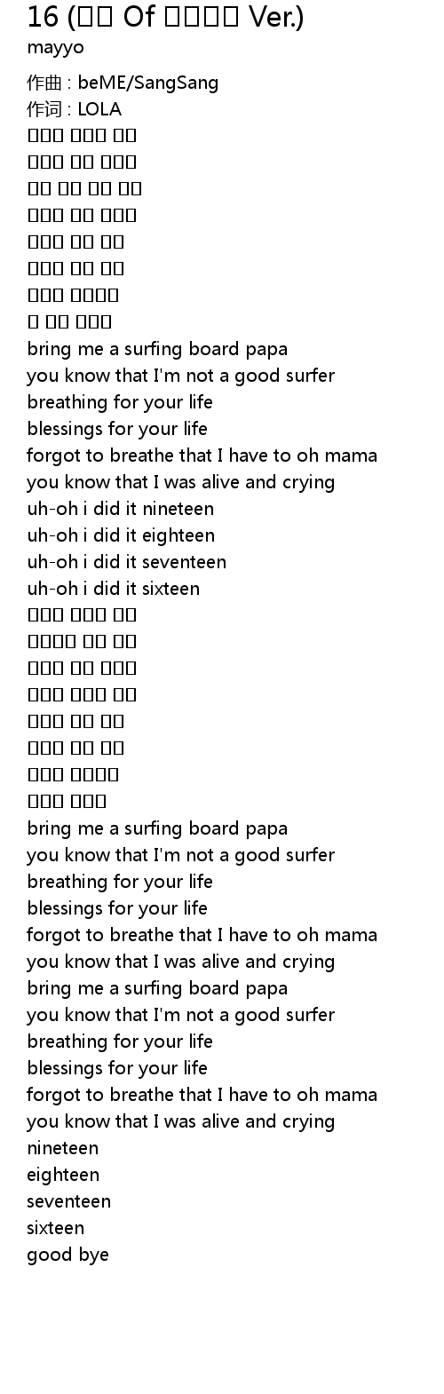 | Song | 16 (박솔 Of 솔루션스 Ver.) |