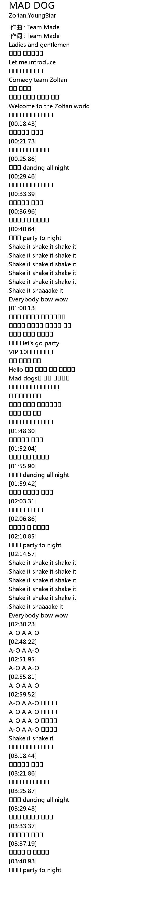 | [01:43.24] | 미친개 처럼 놀자 |