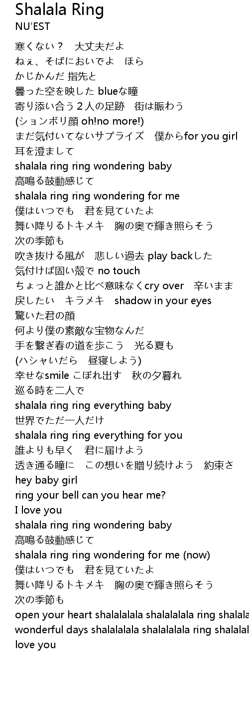 | [02:53.556] | shalala ring ring wondering for me (now) |