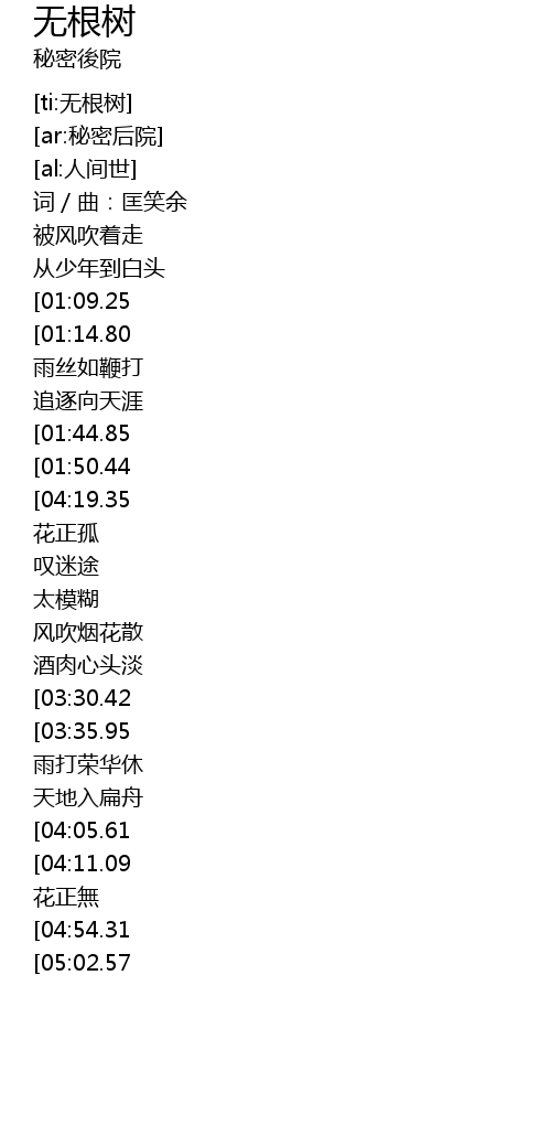 | [01:59.19][04:19.35] | 無根樹 |