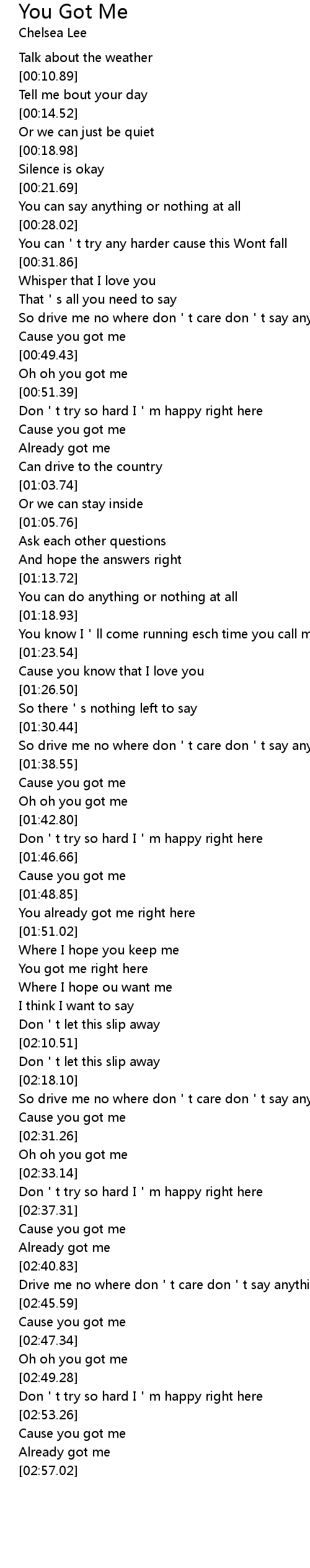 | [02:42.02] | Drive me no where don t care don t say anything |