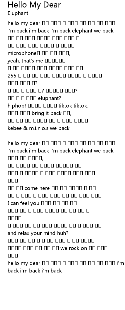 hello my dear 이제 말할께 더 놀아도 되요 함께 하길 바래요 i'm back i'm back i'm back |