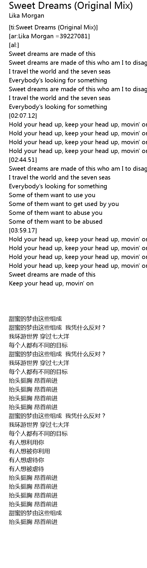 [ti:Sweet Dreams (Original Mix)] |