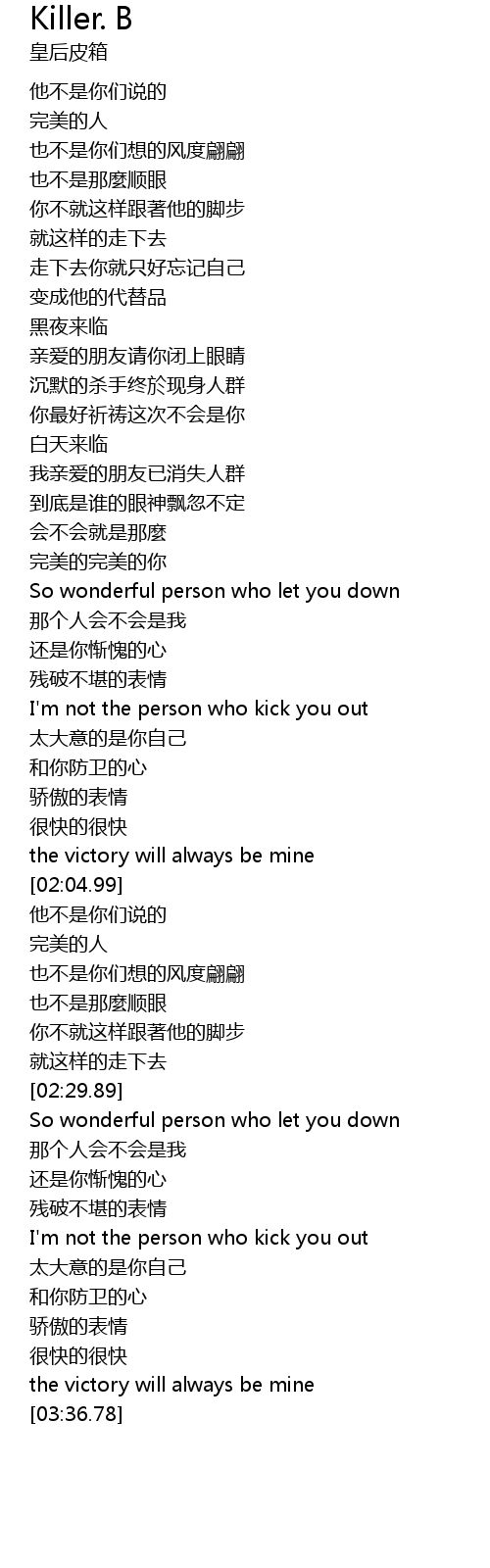 | [02:57.47] | So wonderful person who let you down |