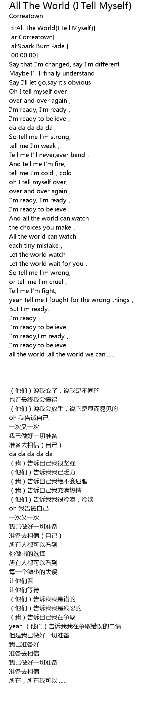 | [00:22.43] | Say that I' m changed, say I' m different |