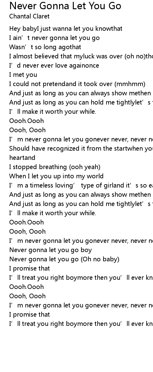 | I' m never gonna let you gonever never, never never gonna let you go. x3 | |